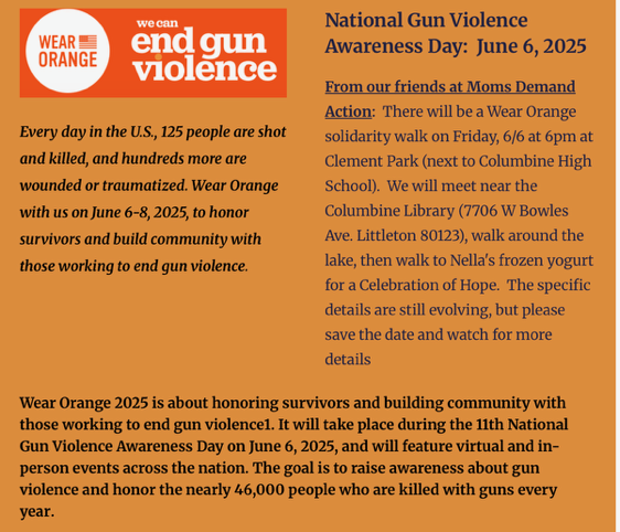 June 6th, 4pm: Wear Orange Peace Walk